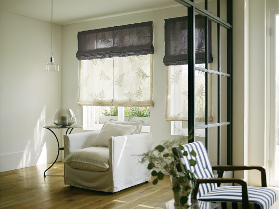 プレーンシェードカーテンは、生地の風合いを生かし、水平に布をたたみ上げて使用します。